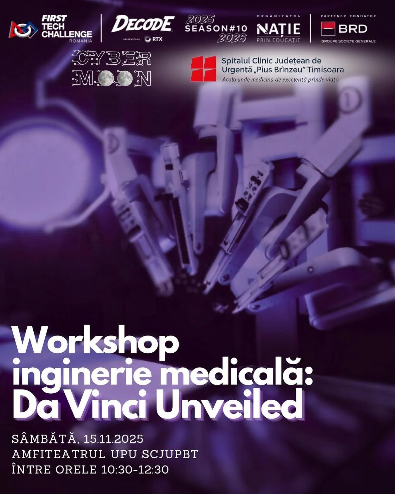 “Da Vinci Unveiled” continued the medical engineering direction started by our earlier workshop. The event focused on the Da Vinci surgical robotic system, one of the few such systems available in Romania. Participants explored how advanced robotics is used in modern surgery. The workshop provided a rare opportunity for students to interact with cutting-edge medical technology.